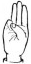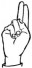 На ћирилици написано МИОДРАГ ТРИКОШАНИН састоји се из 17 слова [?]. Исписано ћириличном једноручном азбуком за глувонеме: